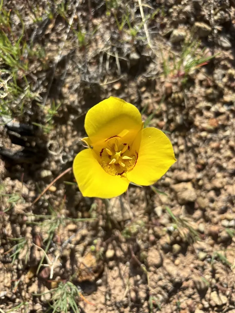 Calochortus aureus is a perennial bulbous plant known as the golden mariposa lily, producing yellow flowers and grass-like basal leaves.