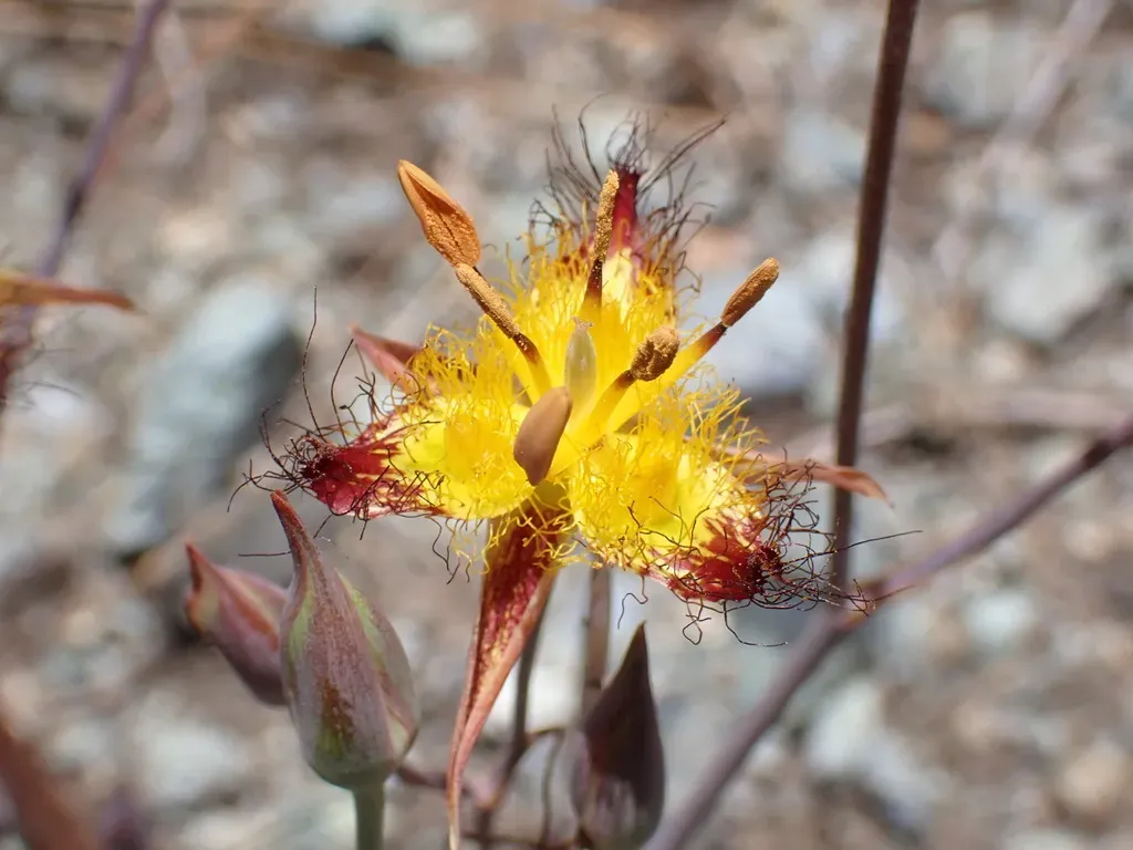 Calochortus obispoensis is a perennial bulbiferous herb endemic to California, known for its delicate, campanulate flowers that range in color from white to pink or rose.