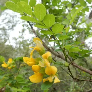 Calpurnia aurea is a multi-stemmed shrub or small evergreen tree native to Southern Africa, known for its delicate compound leaves and bright yellow pea-like flowers.