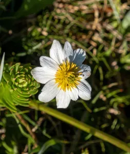 Caltha chionophila is a perennial herbaceous plant native to subalpine and subarctic regions of the western central United States, known for its white flowers and affinity for moist, marshy habitats.