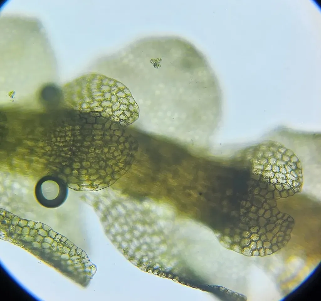 A leafy liverwort with translucent, glistening, green to brownish thalli, commonly found in damp, acidic environments.