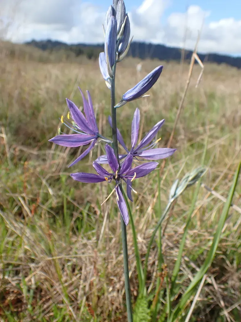 Camassia quamash is a perennial herbaceous plant native to western North America, known for its attractive star-shaped blue to purple flowers and edible bulbs.