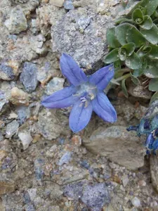 Campanula cenisia is an alpine perennial plant native to the Alps, known for its bright blue bell-shaped flowers and preference for rocky, well-drained soils.