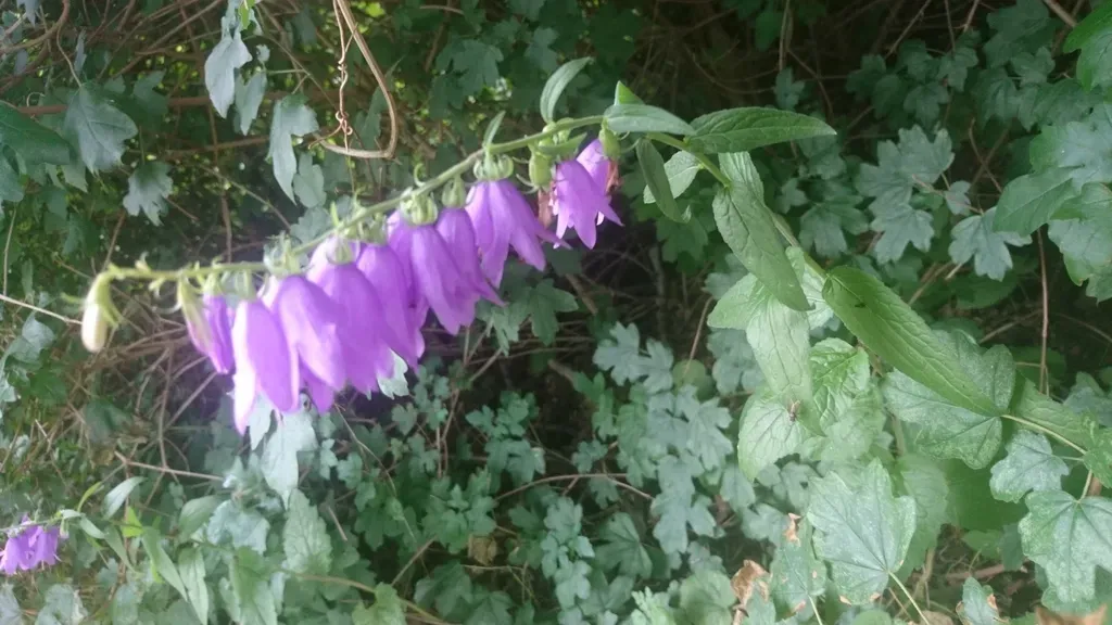 Campanula rapunculoides is a rhizomatous perennial herb known for its nodding, bell-shaped blue to purple flowers and aggressive spreading habit.