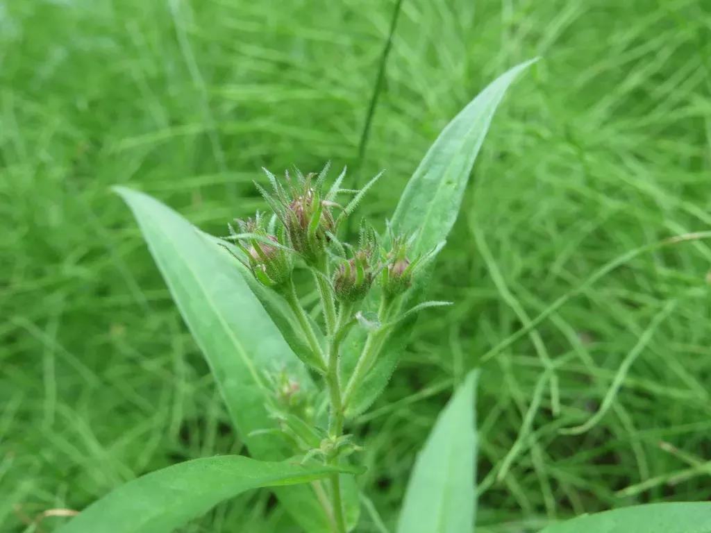 Canadanthus modestus is a perennial herbaceous plant native to North America, known for its spreading growth via rhizomes and deep purple flowers.