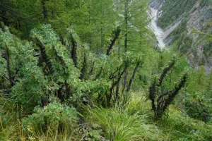 Caragana jubata is a deciduous, very spiny shrub native to temperate Asia, known for its upright growth habit and adaptability to poor soils.