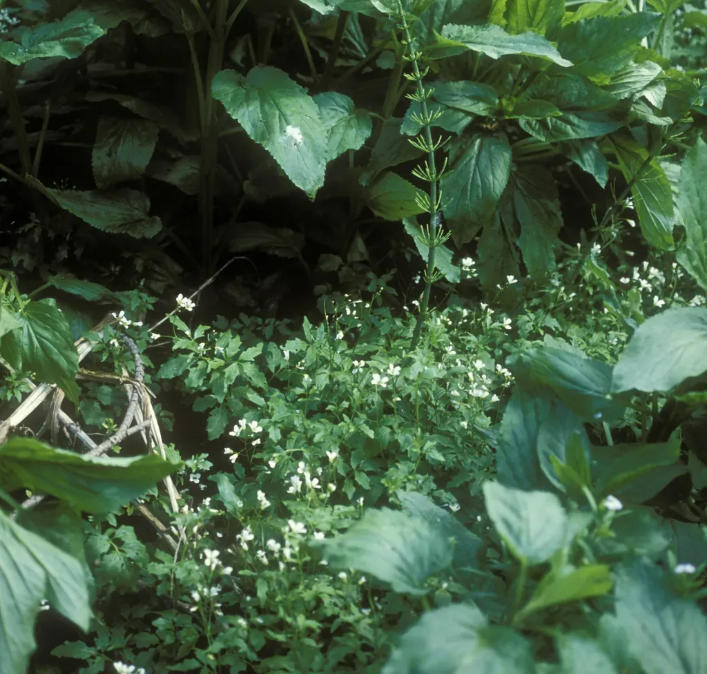 Large Bitter-cress (Cardamine Amara) is a perennial herb in the Brassicaceae family with easy care difficulty. It requires high watering and partial shade or full shade light in USDA hardiness zones 5-8. This plant is safe for cats and dogs.