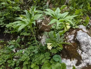 Cardamine enneaphyllos is a perennial flowering plant native to Central and Southeastern Europe, known for its distinctive nine-part divided leaves and delicate flowers.