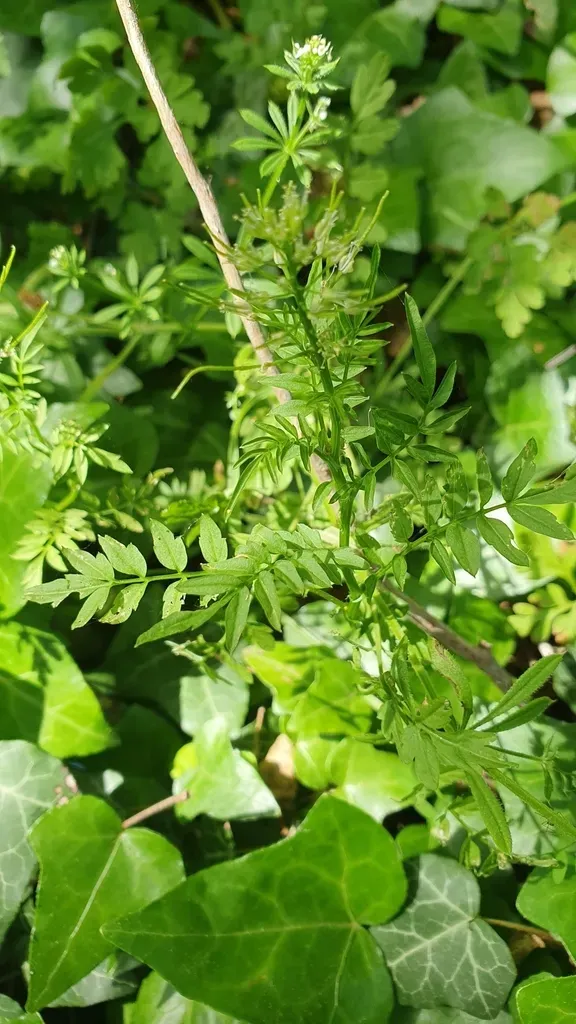 Cardamine impatiens is a slender, upright herbaceous plant native to Eurasia, commonly found in moist, shaded woodlands and disturbed soils.