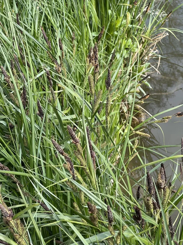 Carex acutiformis is a perennial sedge native to wetlands, forming dense stands up to 1 meter tall.