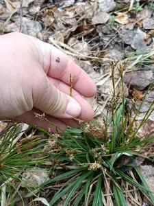 Finger Sedge (Carex Digitata) is a perennial grass in the Cyperaceae family with easy care difficulty. It requires moderate watering and partial shade or dappled_shade light in USDA hardiness zones 5-9. This plant is safe for cats and dogs.