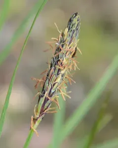 Carex kelloggii is a perennial sedge native to the Pacific Northwest, recognized by its cespitose habit and densely packed green perigynia.