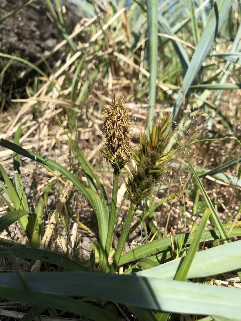 Carex macrocephala is a perennial sedge native to coastal sandy environments, characterized by its large flower heads and rhizomatous growth habit.
