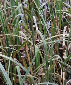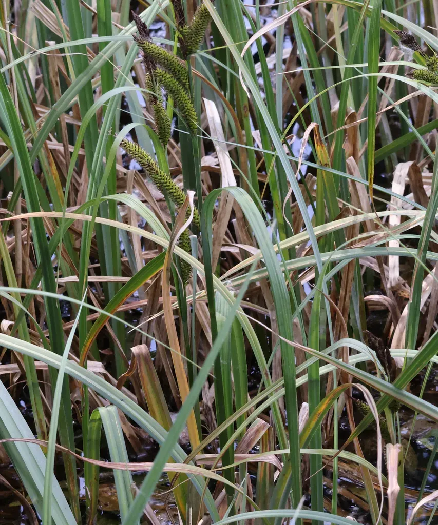 Carex riparia is a large, fast-growing perennial sedge native to Europe, known for its tall tussock-forming growth and spreading rhizomes.