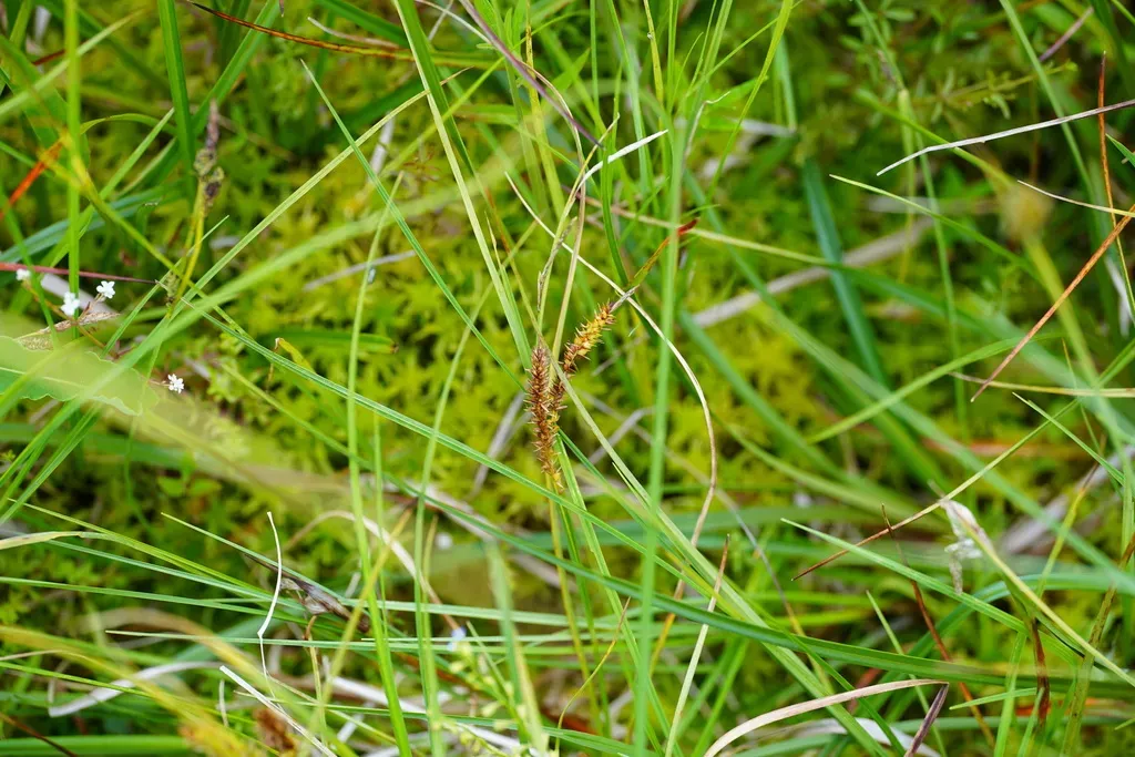 Beaked Sedge (Carex Rostrata) is a perennial grass in the Cyperaceae family with easy care difficulty. It requires high watering and full sun or partial shade light in USDA hardiness zones 3-7. This plant is safe for cats and dogs.