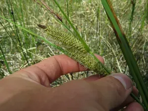 Carex utriculata is a perennial sedge commonly found in wet habitats such as marshes, lake and pond margins, bogs, and wet meadows.