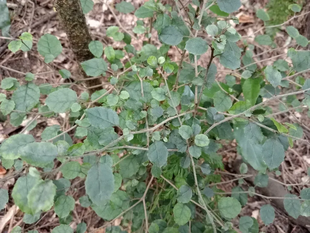 Carpodetus serratus is an evergreen small tree or shrub native to New Zealand, known for its mottled grey-white bark and distinctive zig-zag twigs.