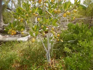 Casasia clusiifolia is a coastal evergreen shrub or small tree native to Florida and the West Indies, known for its edible fruit and leathery leaves.
