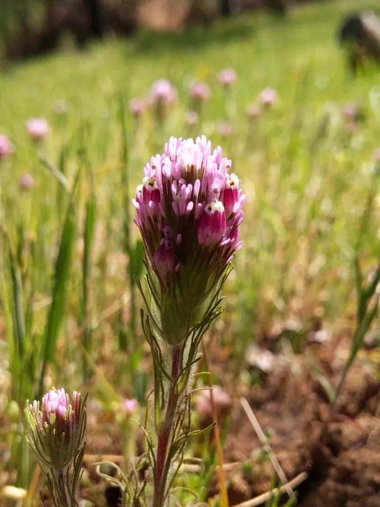 Castilleja exserta is a colorful annual wildflower native to western North America, notable for its dense spikes of velvety, pinkish-purple flowers and its role as a hemiparasite on the roots of neighboring plants.