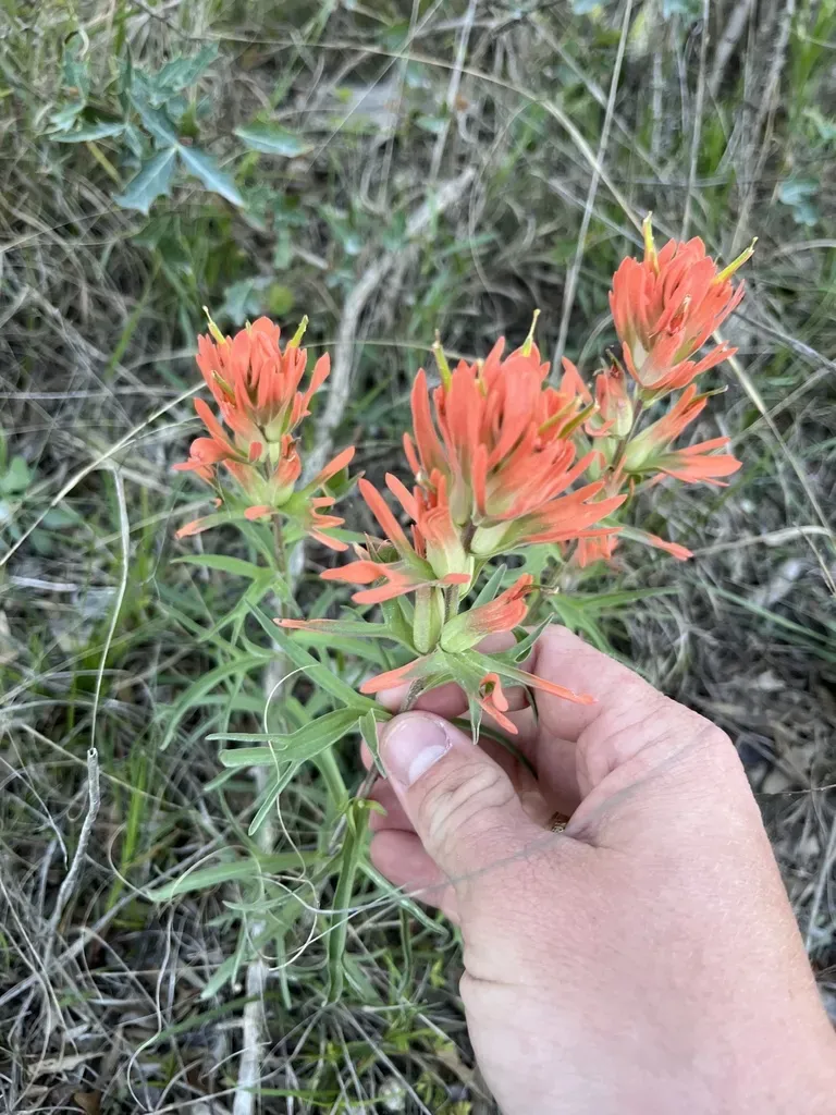 A perennial herbaceous plant known for its colorful bracts and hemiparasitic nature, native to Texas and surrounding areas.