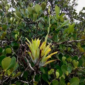 Powdery-strap Bromeliad (Catopsis Berteroniana) is a plant in the Bromeliaceae family with moderate care difficulty. It requires moderate watering and moderate light.