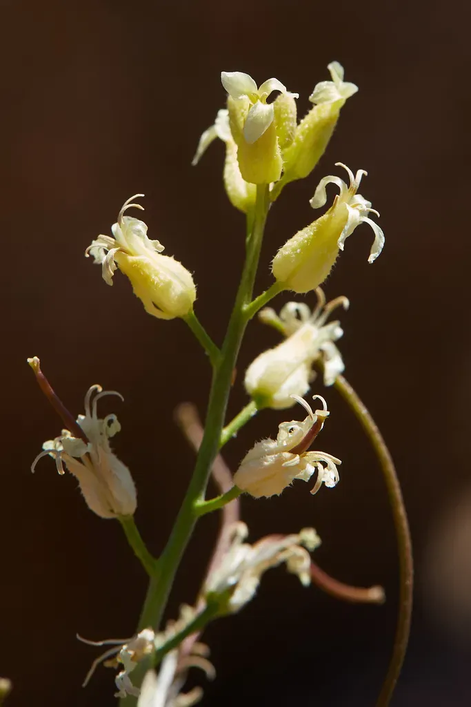 Hall's Wild Cabbage (Caulanthus Hallii) is a annual herb in the Brassicaceae family with moderate care difficulty. It requires low watering and full sun light in USDA hardiness zones 9-11. This plant is safe for cats and dogs.