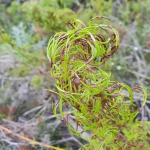 Caustis recurvata is a perennial sedge native to eastern Australia, known for its distinctive curly, wiry foliage and erect brown stems.
