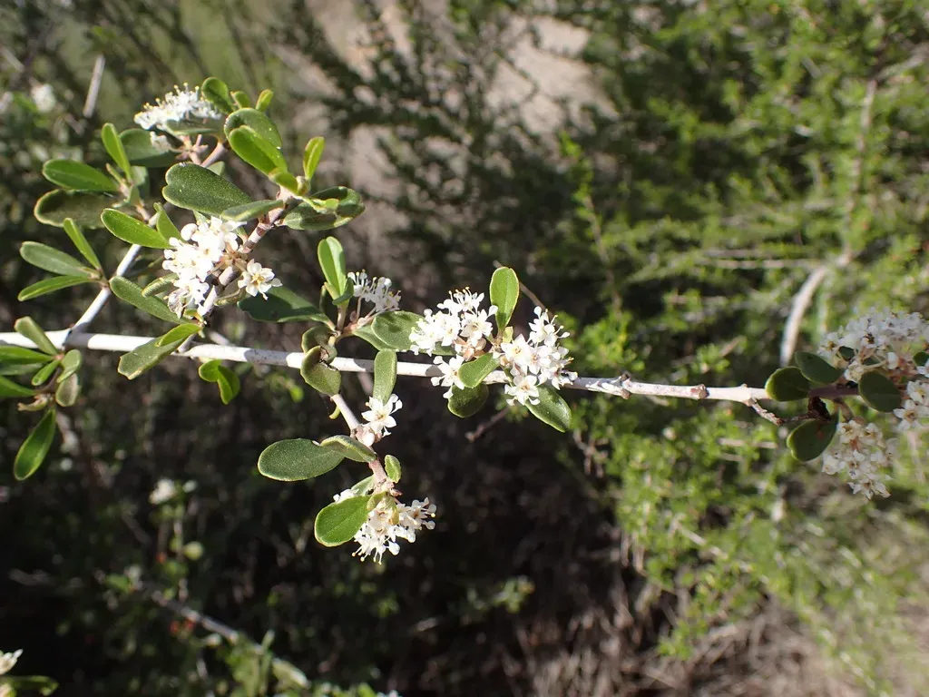 Ceanothus cuneatus is an evergreen shrub native to California, known for its spreading habit and ability to thrive in hot, dry conditions.