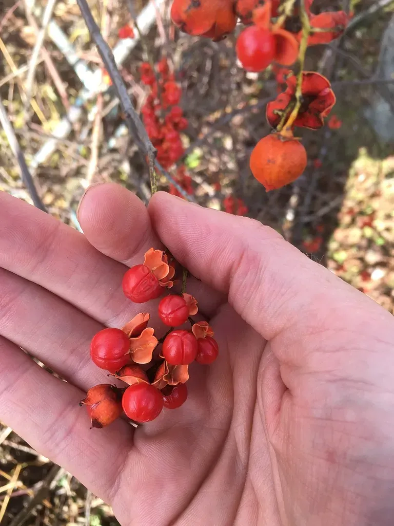 A deciduous, twining woody vine known for its showy red berries and green flowers.