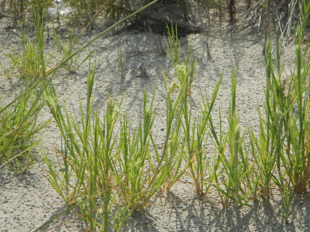 Dune Sandspur (Cenchrus Tribuloides) is a annual grass in the Poaceae family with easy care difficulty. It requires low to medium watering and full sun light in USDA hardiness zones 7-11. This plant is safe for cats and dogs.