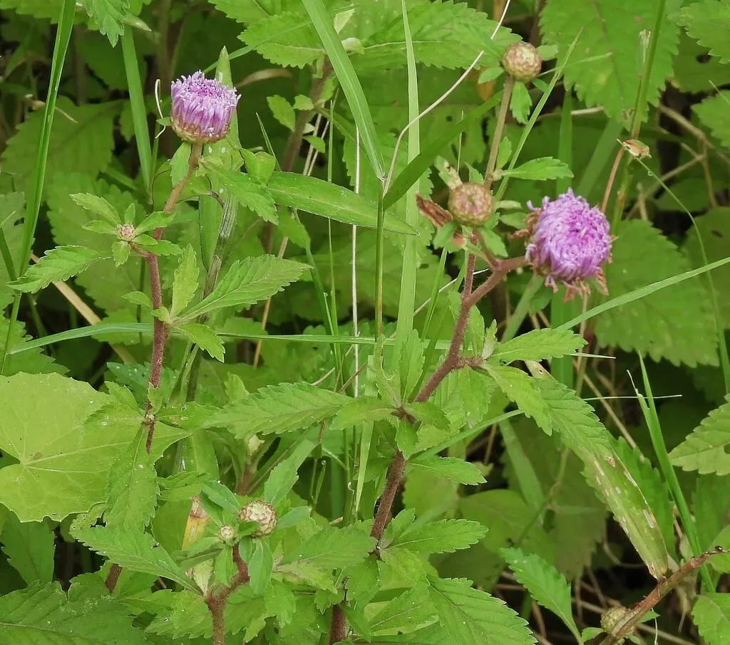 Brazilian Bachelor's Button (Centratherum Punctatum) is a perennial herb in the Asteraceae family with easy care difficulty. It requires moderate watering and full sun or partial shade light in USDA hardiness zones 10-12. This plant is safe for cats and dogs. It can be grown indoors.