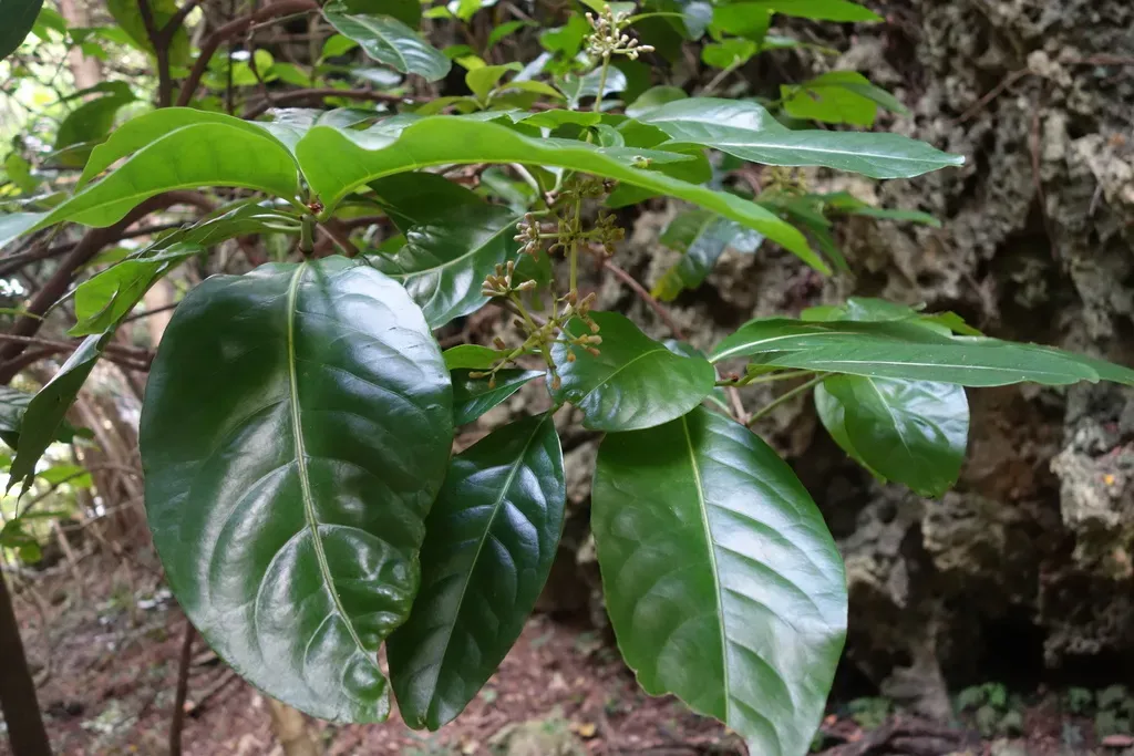 Ceodes umbellifera is a large shrub or tree native to tropical and subtropical Asia and the Pacific, known for its glossy, elliptic to ovate leaves and unique inflorescences.
