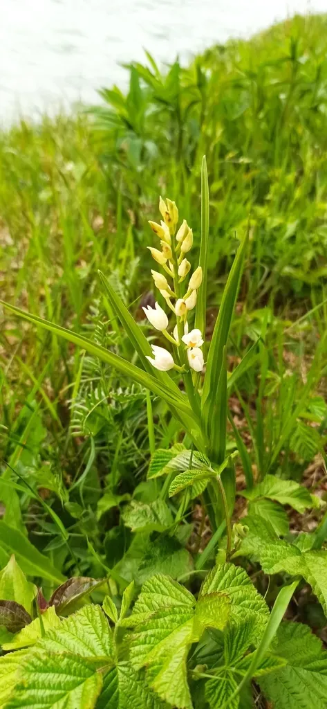 Cephalanthera longifolia is a slender, perennial orchid with narrow, lance-shaped leaves and white flowers.