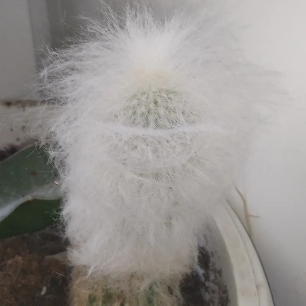 Cephalocereus senilis is a tall, columnar cactus characterized by its dense white hair-like spines that resemble an old man's beard.