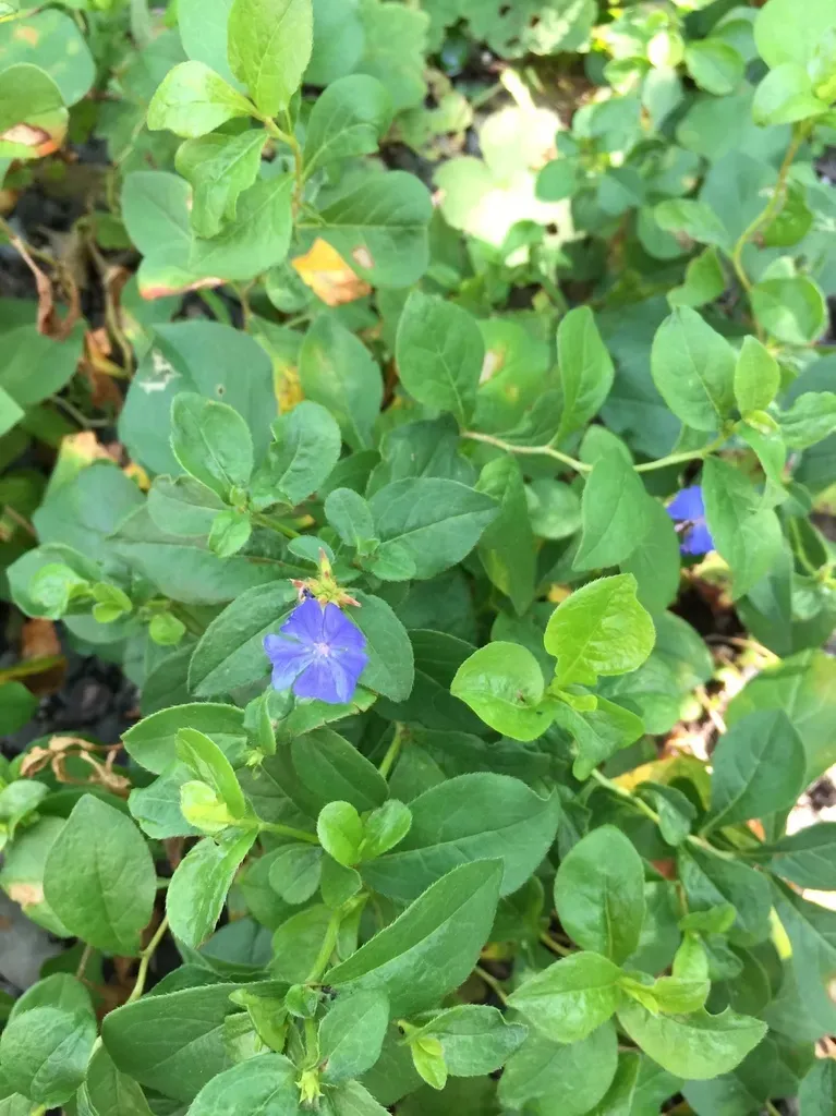 A low-growing perennial groundcover with bright blue flowers and green leaves that turn red in fall.