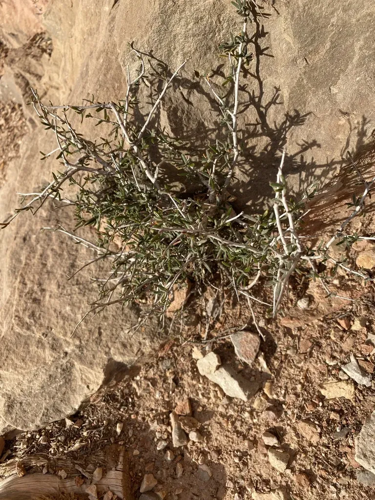 An evergreen shrub native to the southwestern United States, known for its dense branching and small, narrow leaves.