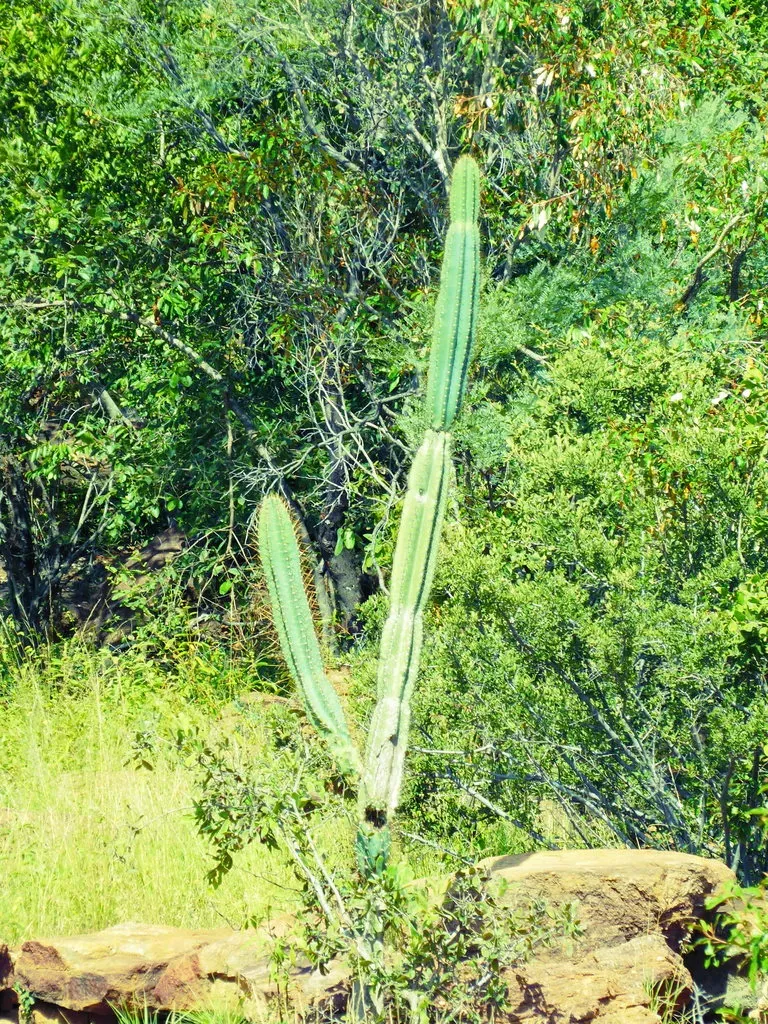 Cereus jamacaru is a tall, columnar cactus native to Brazil, known for its spiny succulent stems and nocturnal white flowers.
