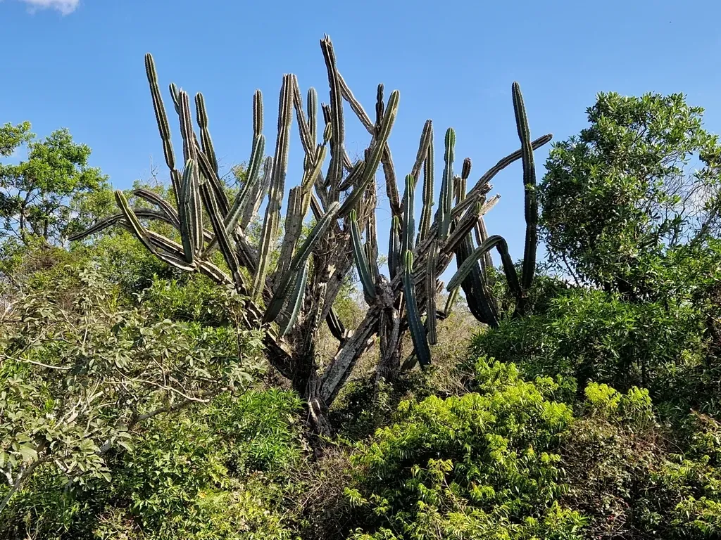 Cereus stenogonus is a tree-like columnar cactus with erect, cylindrical bluish-green to yellowish-green stems, bearing 4 to 5 narrow ribs and short spines.