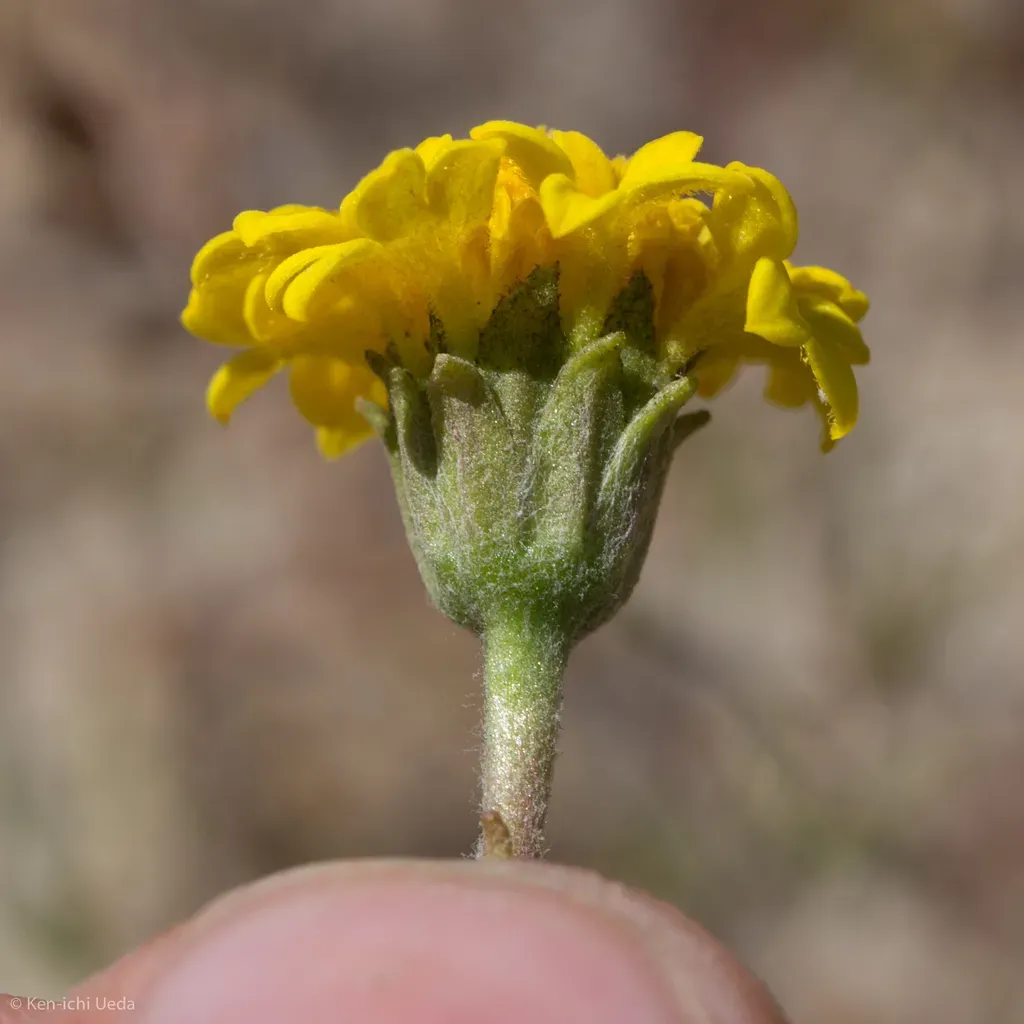 Chaenactis glabriuscula is an annual herbaceous flowering plant native to California and Baja California, known for its bright yellow pincushion-like flowers.