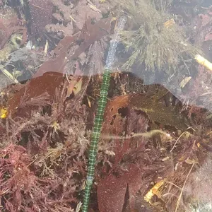 Chaetomorpha coliformis is a species of green algae characterized by its long, bead-like chains of large spherical cells, typically bright green in color.