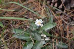 Chaptalia tomentosa is a perennial herb native to wet pine savannas, flatwoods, and marshy areas, recognized by its woolly white flowering stalk and elliptical leaves.