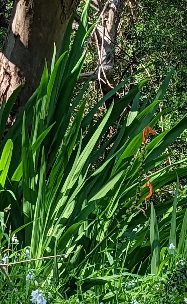 African Corn Flag (Chasmanthe Bicolor) is a perennial bulb in the Iridaceae family with easy care difficulty. It requires moderate watering and full sun or partial shade light in USDA hardiness zones 9-11. This plant is safe for cats and dogs.