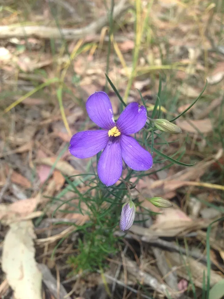 Cheiranthera linearis is a small woody shrub native to Australia, known for its striking royal blue to deep purple flowers and linear leaves.