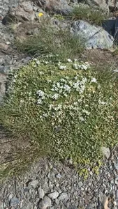 Alpine Sandwort (Cherleria Obtusiloba) is a perennial herb in the Caryophyllaceae family with moderate care difficulty. It requires moderate watering and full sun or partial shade light in USDA hardiness zones 2-7. This plant is safe for cats and dogs.