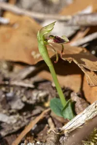 Short-clubbed Wasp Orchid (Chiloglottis Reflexa) is a plant in the Orchidaceae family with moderate care difficulty. It requires moderate watering and moderate light.