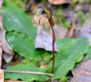 Small Wasp Orchid (Chiloglottis Sylvestris) is a plant in the Orchidaceae family with moderate care difficulty. It requires moderate watering and moderate light.