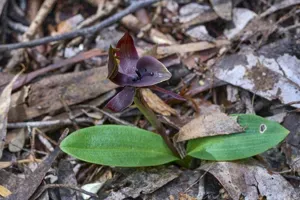 Chiloglottis valida is a terrestrial orchid endemic to south-eastern Australia, known for its distinctive flower resembling a bird's mouth.