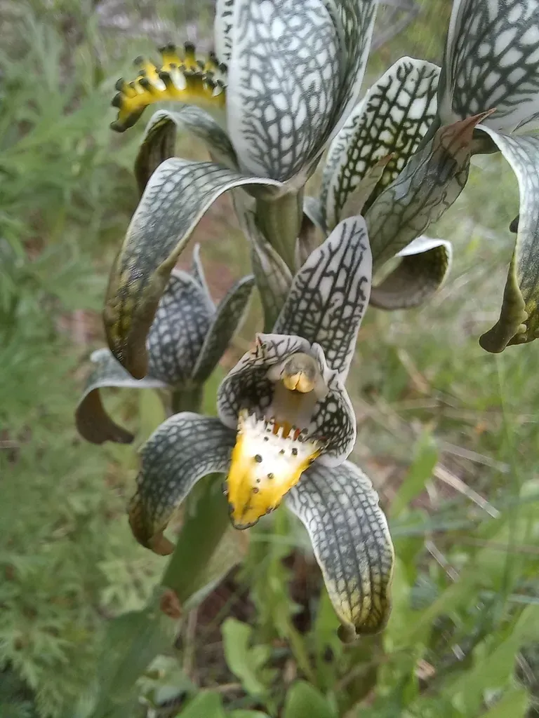 A terrestrial orchid native to southern South America, known for its white, porcelain-like flowers.