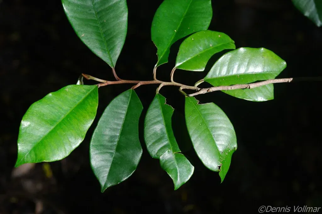Chrysophyllum oliviforme is a medium-sized evergreen tree native to Florida and the Caribbean, recognized for its glossy, dark green leaves with coppery undersides and small, edible olive-shaped fruits.
