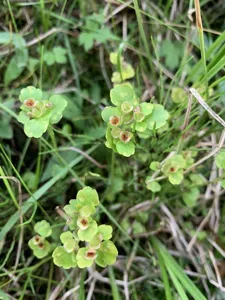 Chrysosplenium tetrandrum is a small, stoloniferous perennial herb with slender, succulent stolons and tiny greenish-yellow flowers.